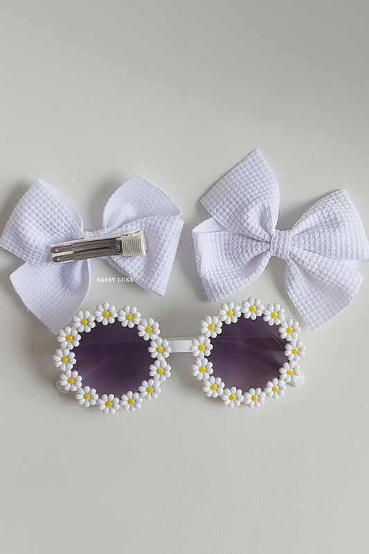 Kids Sunglasses Set With Sweet Bow Hair Clips 3pcs