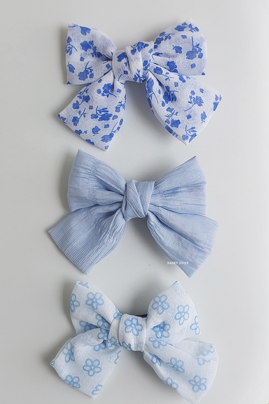 Spring Bow Hair Clip 3pcs Pink or Blue