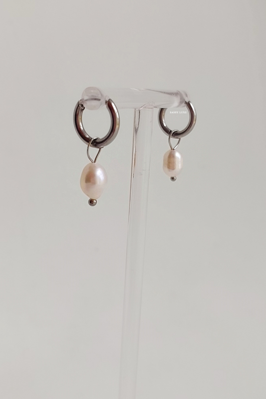 Mini Pearl Hoops - Silver